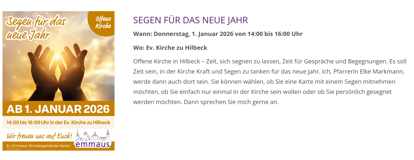 Donnerstag, 01. Januar 2026 von 14:00 bis 16:00